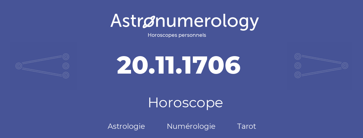 Horoscope pour anniversaire (jour de naissance): 20.11.1706 (20 Novembre 1706)