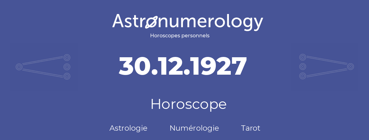 Horoscope pour anniversaire (jour de naissance): 30.12.1927 (30 Décembre 1927)