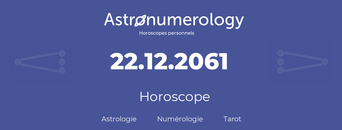 Horoscope pour anniversaire (jour de naissance): 22.12.2061 (22 Décembre 2061)